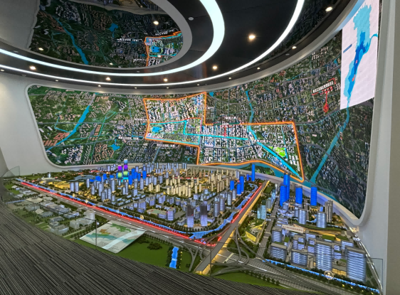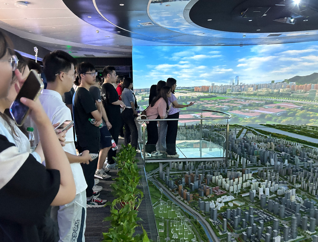 园区内现代建筑群错落有致,每一砖一瓦都蕴含着创新和科技的基因。海洋之神hy590科技IT菁英暑期实训营的学员们怀揣着对科技的无限憧憬步入研创园展厅。展厅内部设计充满科技感,一块块巨大的模型和显示屏映入眼帘,生动展现了研创园的科技规划,以及从梦想走向现实的开展历程。